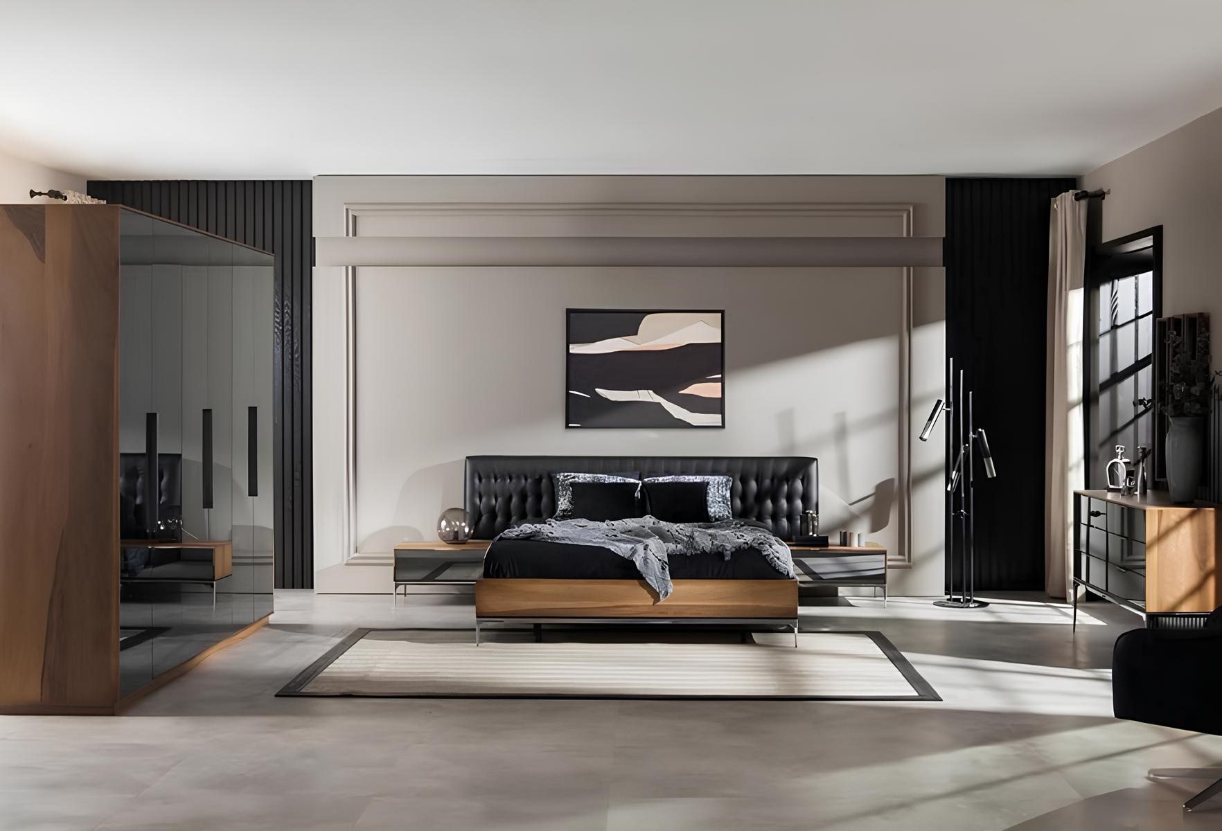 O Conjunto de Móveis de Quarto Ideal é a expressão máxima de sofisticação e elegância. Composto por uma cama majestosa, mesas de cabeceira requintadas e um armário em quatro partes, este conjunto é a escolha perfeita para quem busca um ambiente exclusivo. A tonalidade preta, cuidadosamente trabalhada, confere um ar de modernidade e classe, enquanto os materiais selecionados garantem durabilidade e um toque de luxo inigualável. Cada peça reflete a experiência de duas décadas da marca em criar móveis que transformam espaços em verdadeiras obras de arte. Este conjunto não é apenas um mobiliário, mas uma afirmação de estilo e um convite a um estilo de vida premium e refinado.