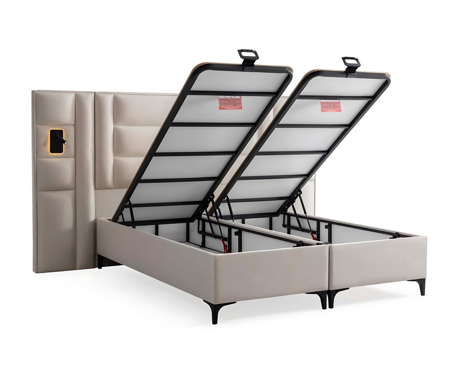 A Cama Elegante Branca com Estofado e Colchão de Madeira é a epitome do requinte e da sofisticação. Seu acabamento em madeira branca traz uma luminosidade sutil ao ambiente, enquanto o estofado de alta qualidade proporciona um toque de conforto incomparável. Projetada para transformar seu espaço em um refúgio de tranquilidade, esta cama não é apenas um móvel, mas uma declaração de estilo. A combinação de materiais nobres e um design atemporal a torna o centro das atenções em qualquer quarto, refletindo um estilo de vida exclusivo e refinado. Escolher esta peça é optar por um lar que respira elegância e conforto, perfeito para quem valoriza a excelência em cada detalhe.