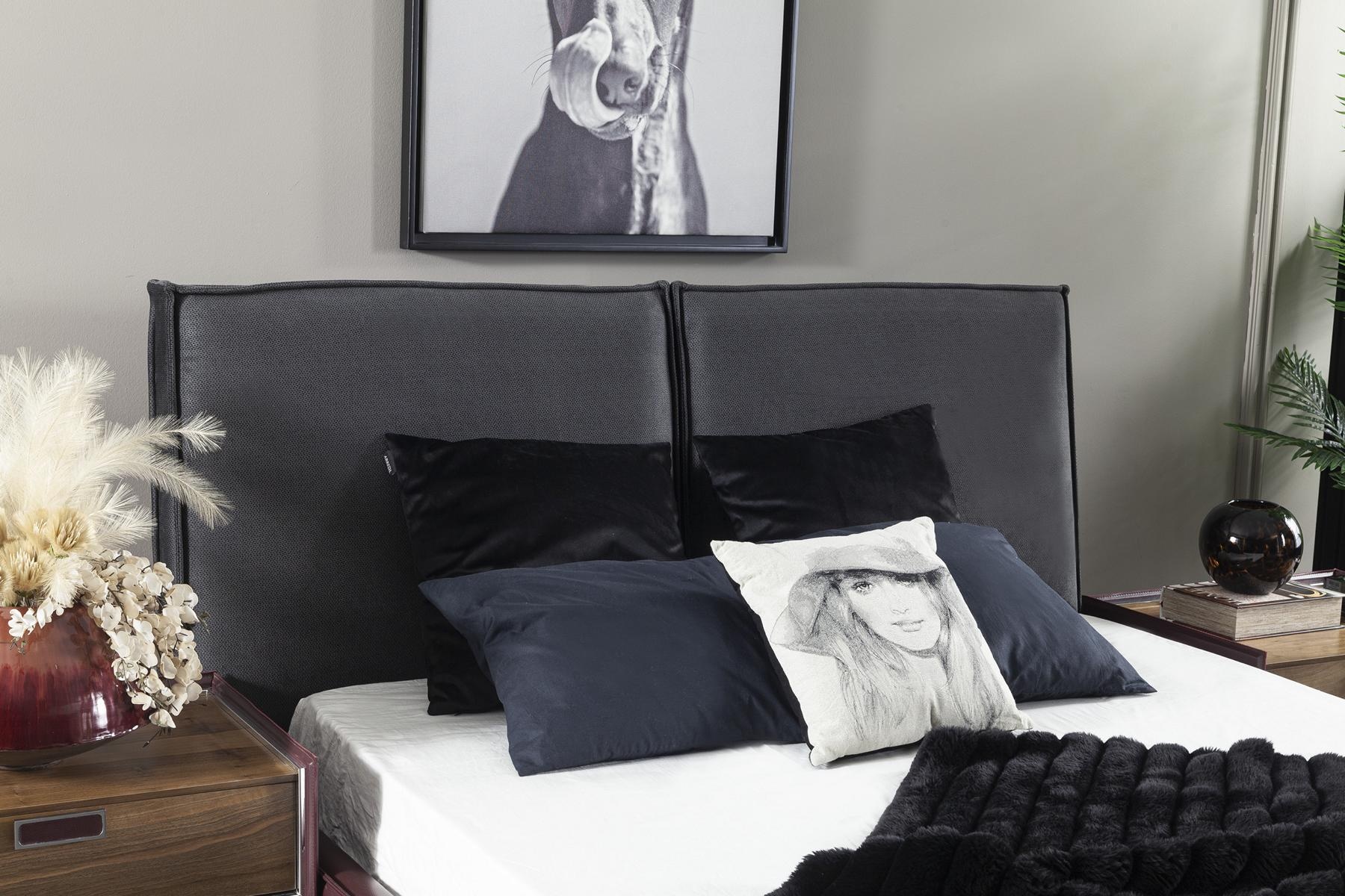 Conjunto de móveis de quarto ideal, incluindo armário, mesas de cabeceira e cama em 4 partes.