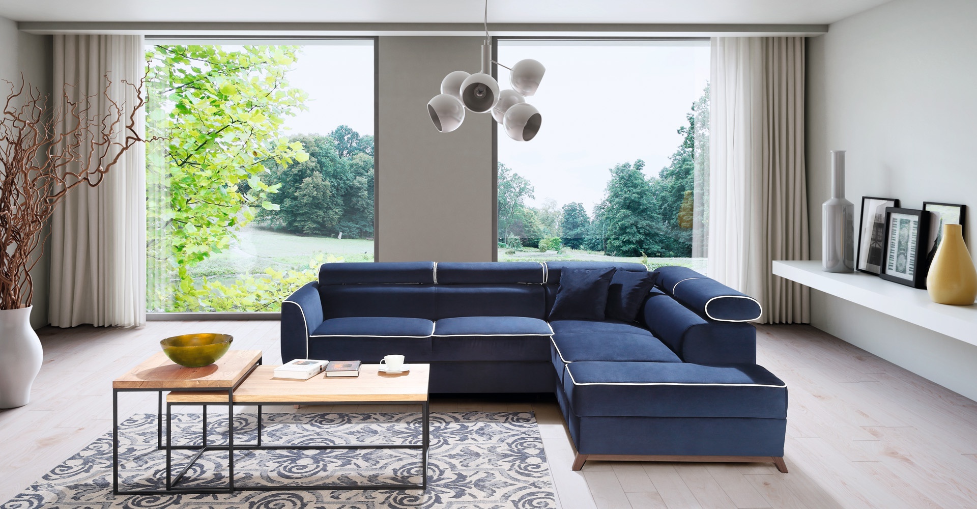 O Sofá de Canto Moderno Azul é a síntese da sofisticação e do conforto, ideal para compor ambientes que exalam elegância. Seu design contemporâneo, aliado ao rico tecido azul, transforma qualquer espaço em um refúgio de exclusividade. Com proporções generosas, este sofá proporciona uma experiência de relaxamento incomparável, convidando a momentos de convívio requintado. A marca, reconhecida por duas décadas de excelência em móveis de luxo, garante que cada detalhe deste sofá é meticulosamente elaborado, refletindo um estilo de vida distinto e refinado. Escolher este sofá é optar por uma peça que não apenas enriquece a estética do lar, mas também valoriza cada instante vivido.