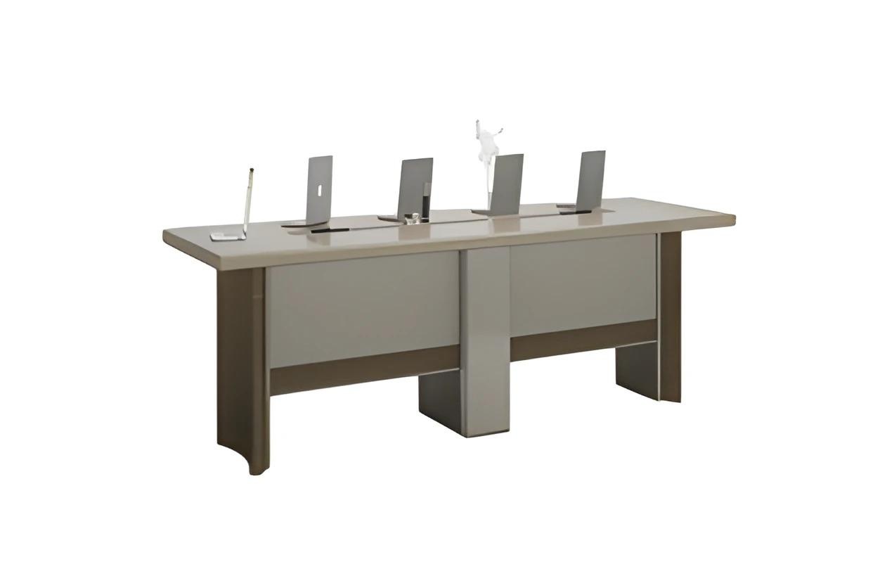 A mesa de reunião moderna cinza claro é a quintessência da elegância contemporânea, projetada para transformar o ambiente corporativo em um espaço de sofisticação e produtividade. Seu tom sutil e refinado combina com uma estrutura robusta, evidenciando a qualidade superior dos materiais utilizados. Com dimensões ideais para reuniões estratégicas, esta peça não apenas serve como um ponto de encontro, mas também como um símbolo de status e refinamento. Cada detalhe foi cuidadosamente elaborado para refletir um estilo de vida exclusivo, fazendo dela uma escolha perfeita para aqueles que buscam uma estética atemporal e funcionalidade. Uma verdadeira obra-prima que eleva a experiência de trabalho a um novo patamar.