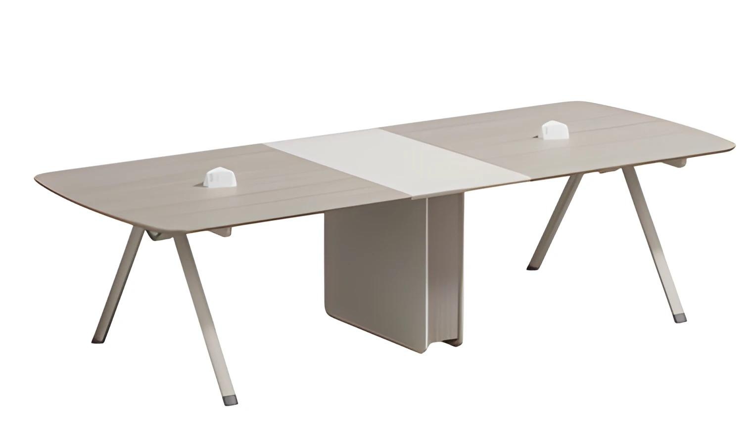 Mesa de reunião modular em bege com gaveta embutida e design moderno