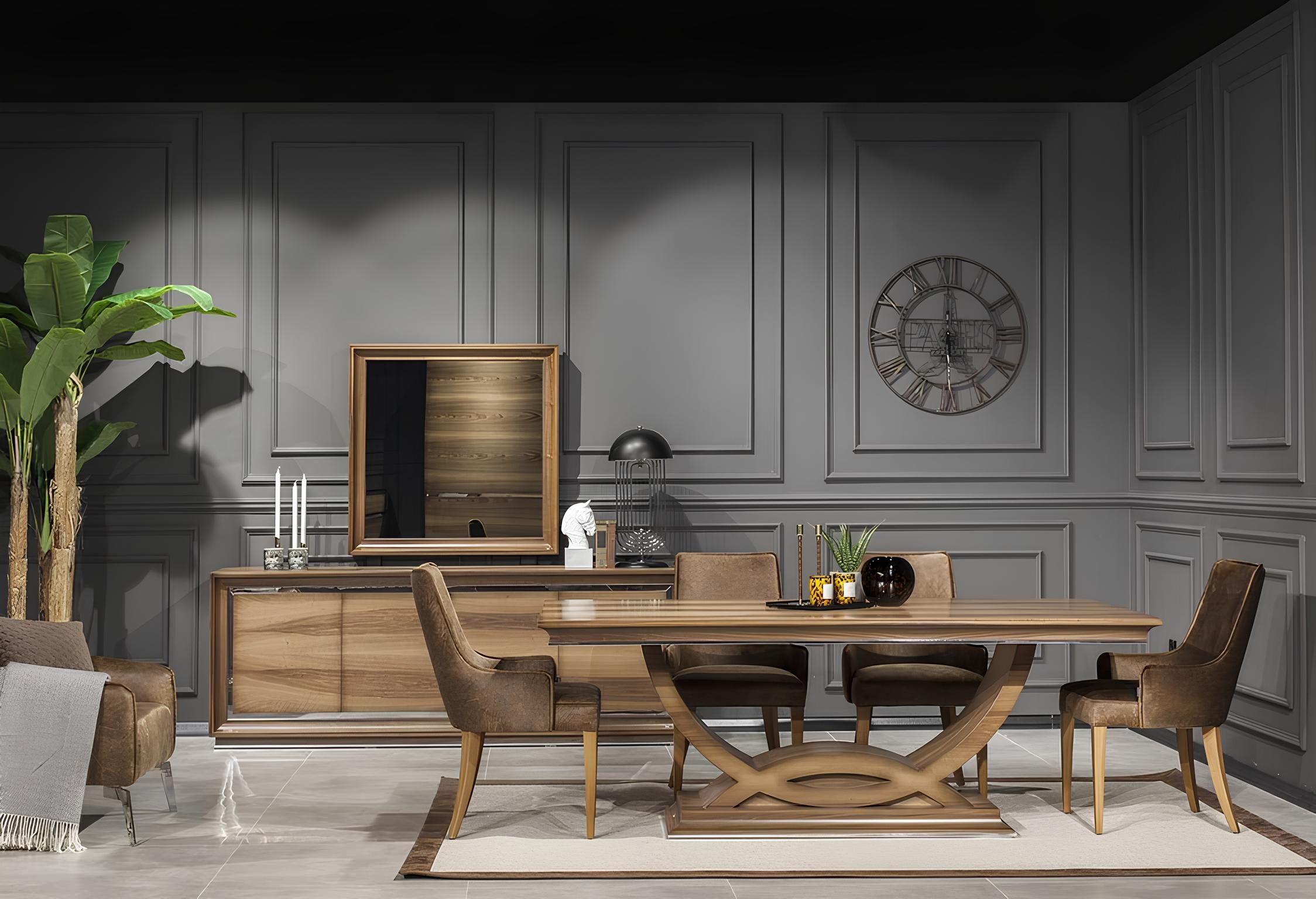 Descubra o Conjunto de Móveis de 9 Peças, uma obra-prima da elegância contemporânea. Composto por uma mesa imponente, cadeiras sofisticadas, uma cômoda funcional e um espelho deslumbrante, este conjunto é a essência do requinte. O acabamento em marrom poliéster confere um toque de calor e sofisticação, ideal para ambientes que desejam exalar exclusividade. Cada peça, meticulosamente projetada, reflete duas décadas de expertise em móveis de luxo, proporcionando não apenas funcionalidade, mas uma experiência estética incomparável. Este conjunto é a escolha perfeita para aqueles que valorizam um estilo de vida distinto, onde cada detalhe conta e a beleza se encontra com a praticidade.
