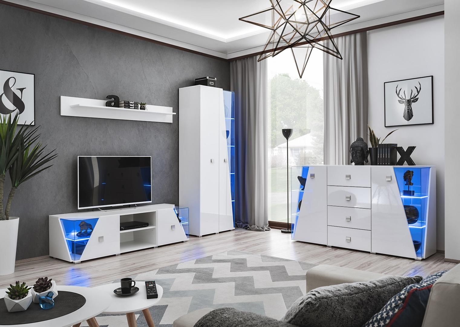 Moderna unidade de TV branca com vitrine, conjunto de 4 peças, novo