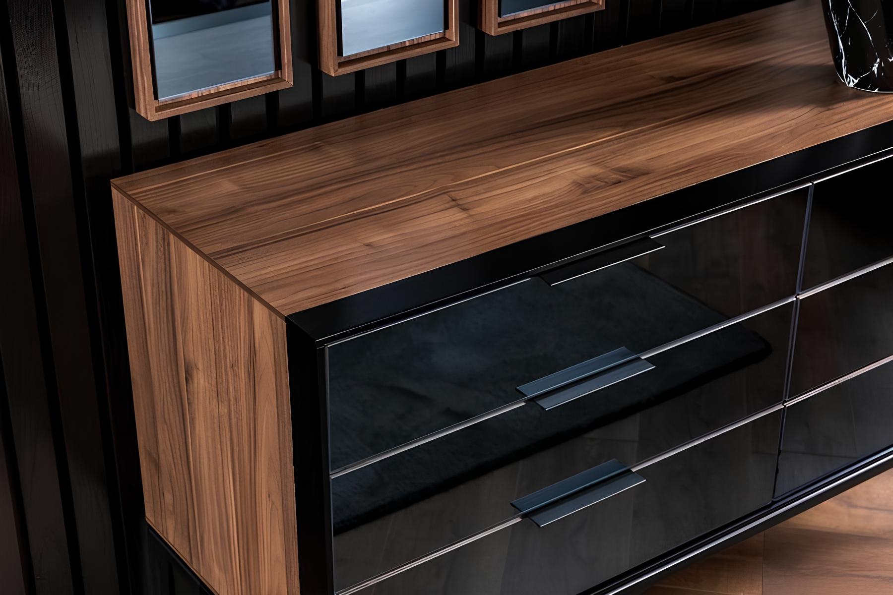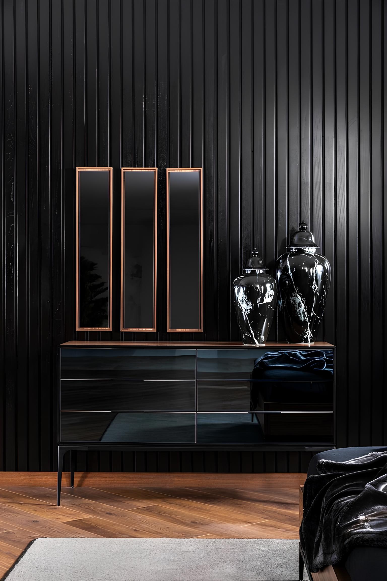 O Conjunto de Móveis de Quarto Perfect Set redefine a elegância contemporânea com sua sofisticada paleta em preto. Composto por oito peças meticulosamente elaboradas, incluindo uma cama imponente e mesas de cabeceira harmoniosas, este conjunto é a epitome do luxo. Cada elemento foi projetado para criar uma atmosfera exclusiva, refletindo um estilo de vida requintado e atemporal.