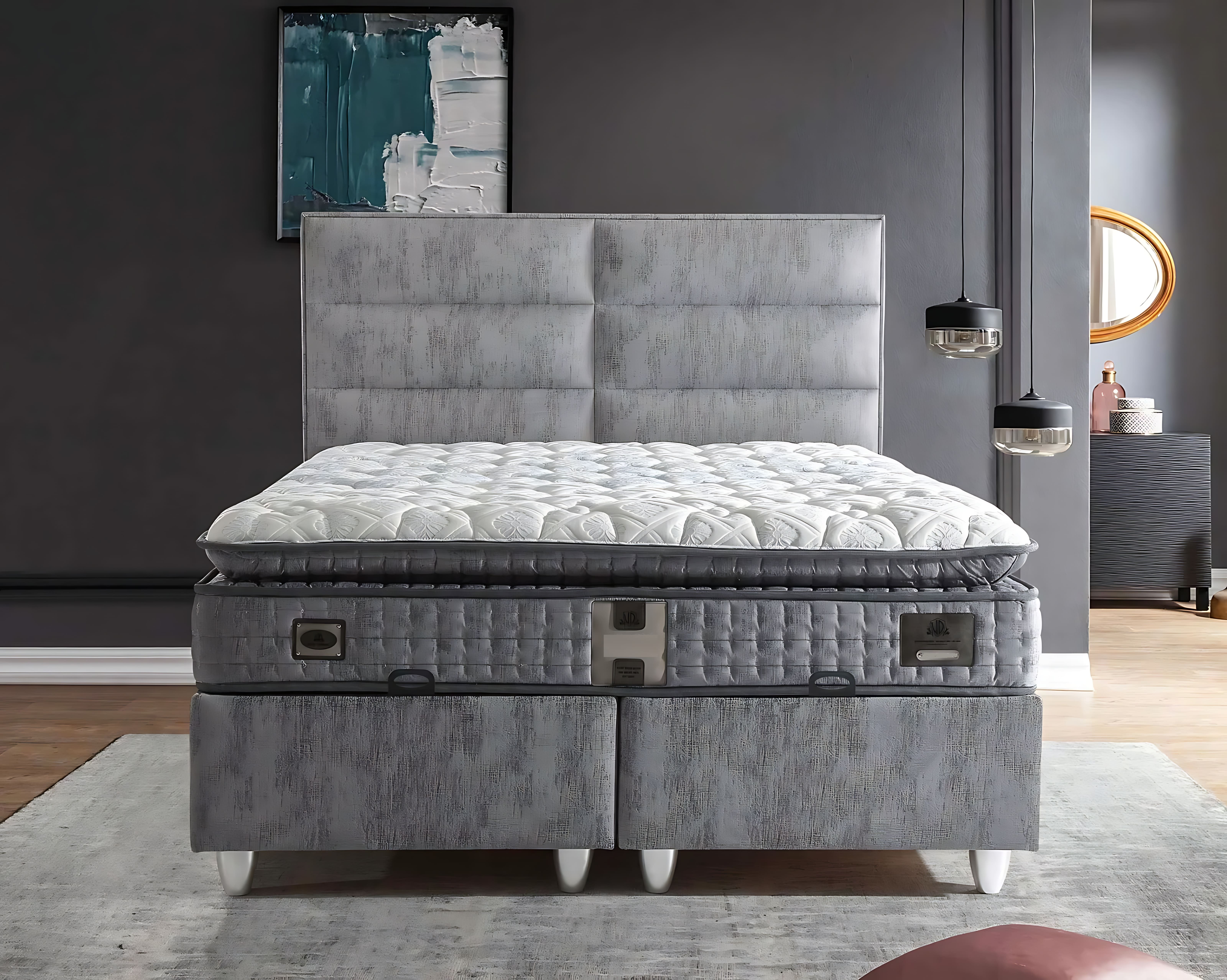 A Cama de tecido cinza moderna com colchão é a síntese da elegância contemporânea, projetada para aqueles que buscam um refúgio de sofisticação. Seu revestimento em cinza madeira confere um toque de modernidade, enquanto a estrutura robusta e o colchão de alta qualidade garantem conforto inigualável. Cada detalhe foi meticulosamente elaborado, refletindo duas décadas de expertise em móveis de luxo. Esta cama não é apenas um móvel, mas um convite a uma experiência de descanso sublime, ideal para compor um ambiente exclusivo e acolhedor. Escolher esta peça é afirmar um estilo de vida distinto, onde o conforto se une à estética refinada.