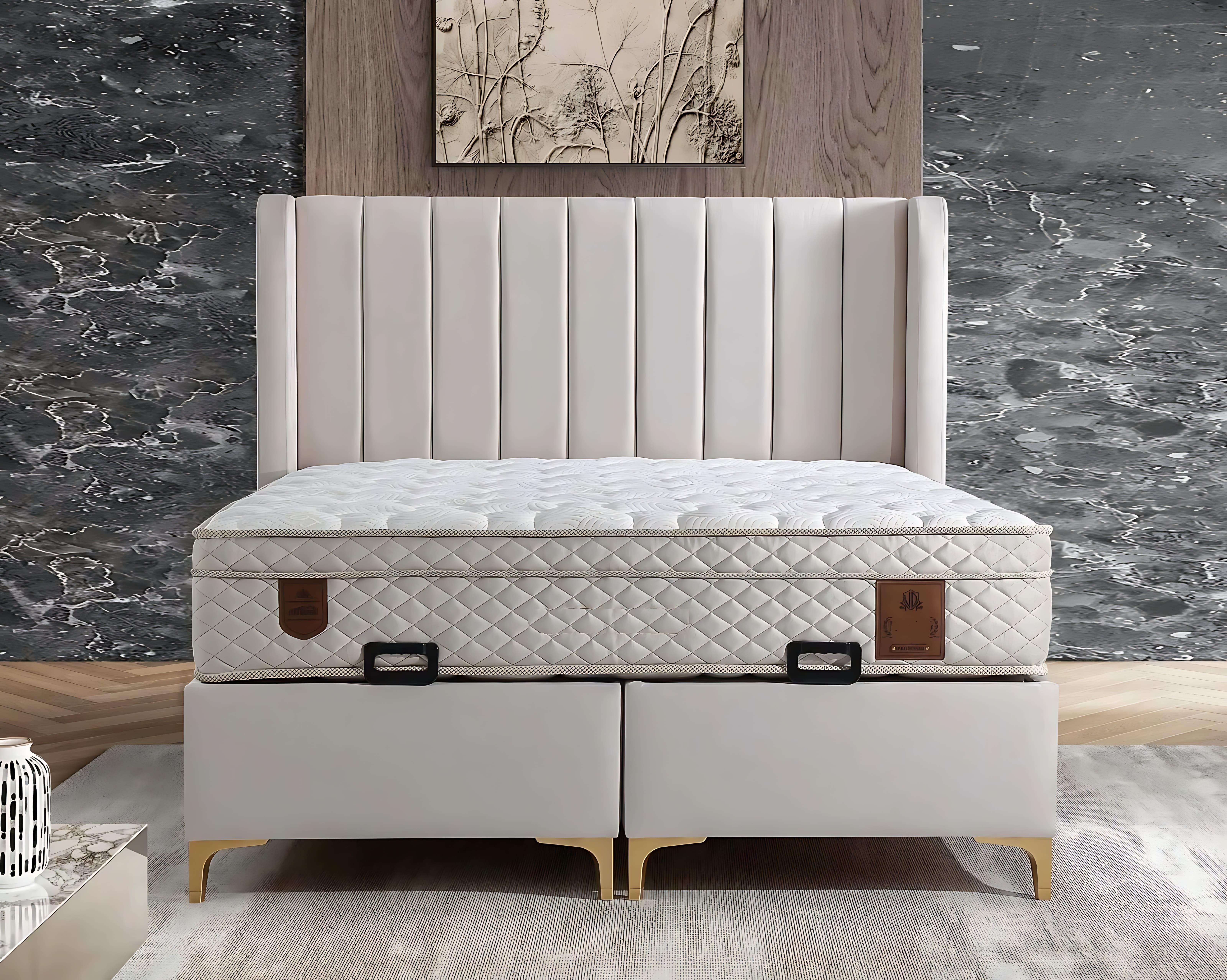 A cama elegante com tecido marrom é a quintessência do requinte e conforto, projetada para transformar seu espaço em um santuário de sofisticação. Seu acabamento em bege madeira, cuidadosamente selecionado, combina a robustez da natureza com a delicadeza do design contemporâneo, criando uma peça que não apenas embeleza, mas também eleva a atmosfera do ambiente. Com dimensões generosas, oferece um descanso sublime, convidando ao relaxamento após um dia agitado. Este móvel é mais do que uma cama; é uma declaração de estilo e uma escolha perfeita para aqueles que valorizam a exclusividade e o bem-estar em cada detalhe de sua vida. Escolha a excelência, escolha viver com distinção.