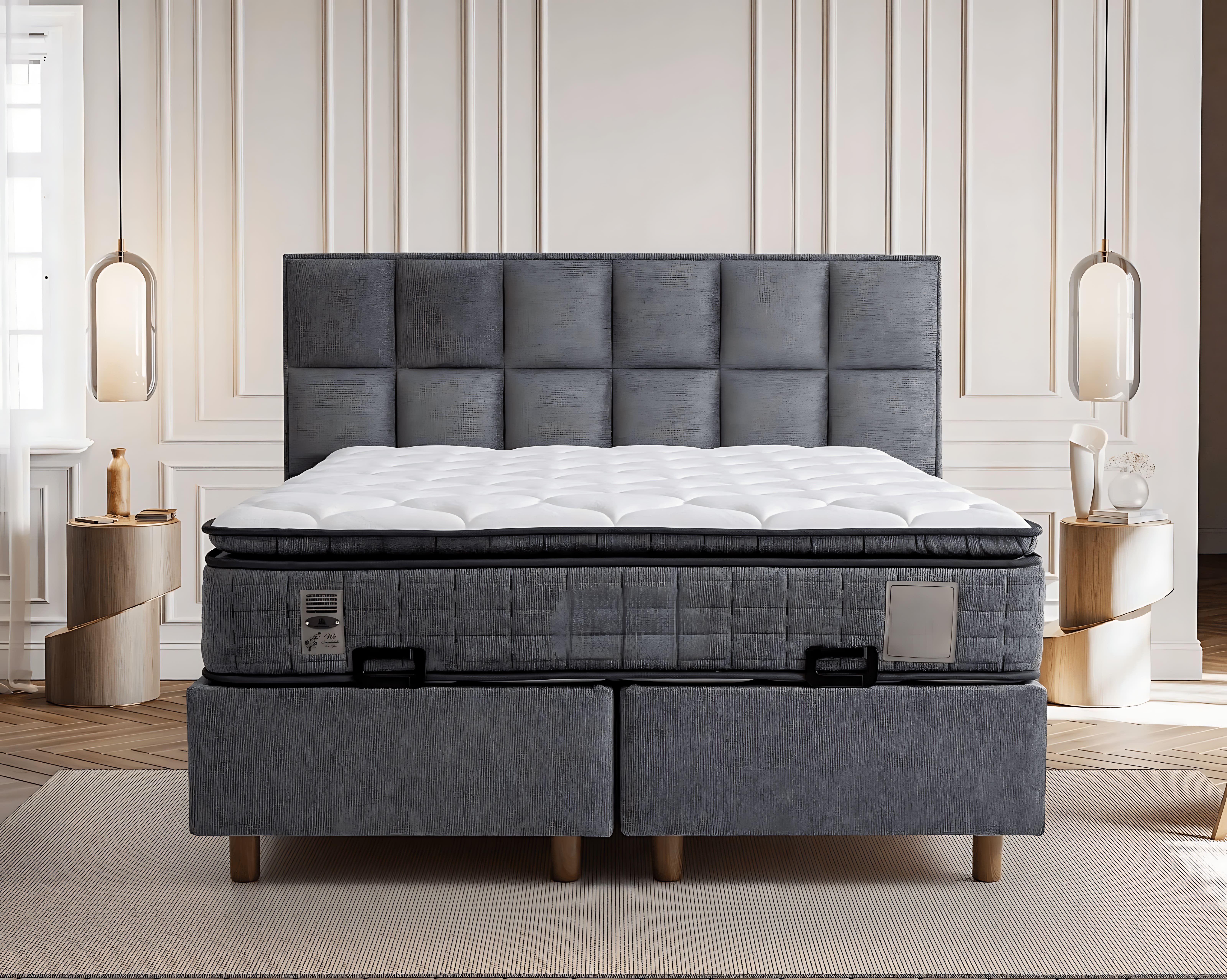 O Conjunto de cama cinza moderno com colchão é a quintessência do refinamento e da elegância contemporânea. Com uma estrutura em cinza madeira, este conjunto não apenas complementa, mas eleva a estética de ambientes sofisticados. Seu design minimalista e meticulosamente elaborado reflete a excelência que a nossa marca, com duas décadas de tradição em móveis de luxo, representa. O colchão, desenvolvido para proporcionar o máximo de conforto, transforma cada noite em uma experiência de descanso incomparável. Esta peça é a escolha ideal para aqueles que buscam um estilo de vida exclusivo, onde cada detalhe conta e a qualidade é inegociável.
