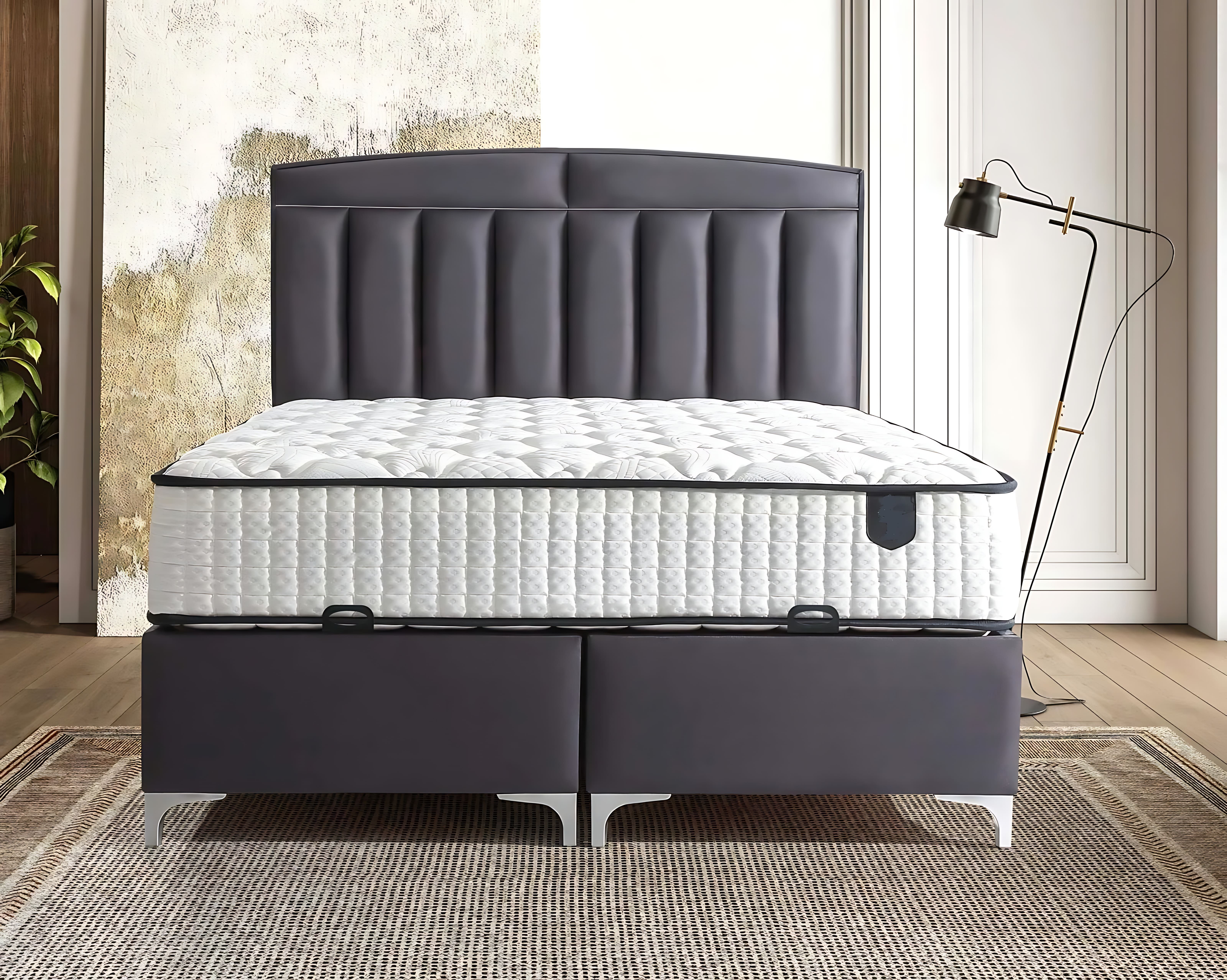 O Conjunto de cama cinza moderno com colchão é a epitome da sofisticação contemporânea. Confeccionado em madeira de alta qualidade, sua tonalidade cinza oferece um toque sutil de elegância, perfeito para compor ambientes exclusivos. O design minimalista não apenas exala modernidade, mas também proporciona um espaço acolhedor e sereno, ideal para um descanso reparador. O colchão, meticulosamente elaborado, garante suporte excepcional e conforto inigualável, elevando a experiência de sono a um novo patamar. Com duas décadas de tradição em móveis de luxo, esta peça é a escolha ideal para quem busca um estilo de vida refinado e uma atmosfera de requinte em casa.
