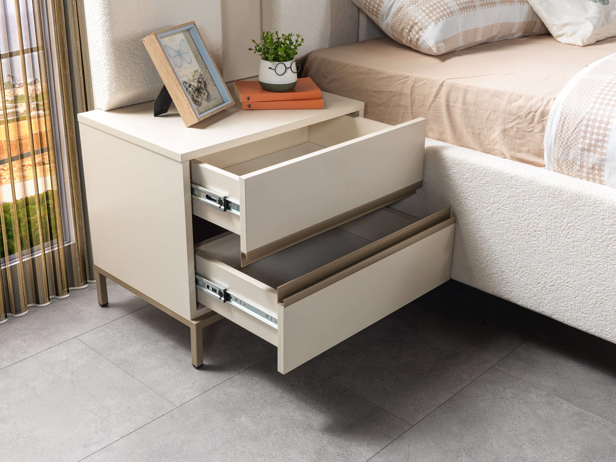 A mesa de cabeceira elegante é uma peça que transcende o convencional, projetada para adornar seu quarto com um toque de sofisticação. Com dimensões de 58 x 42 x 52 cm, sua silhueta harmoniosa se integra perfeitamente a qualquer ambiente, enquanto o tom bege, luxuoso e atemporal, evoca uma sensação de calma e requinte. Feita com materiais de qualidade superior, esta mesa não é apenas um elemento funcional, mas uma afirmação de estilo que reflete um lifestyle exclusivo. Ideal para aqueles que apreciam a união entre praticidade e estética, ela complementa a sua decoração, garantindo que cada detalhe do seu lar seja uma expressão de bom gosto e elegância.