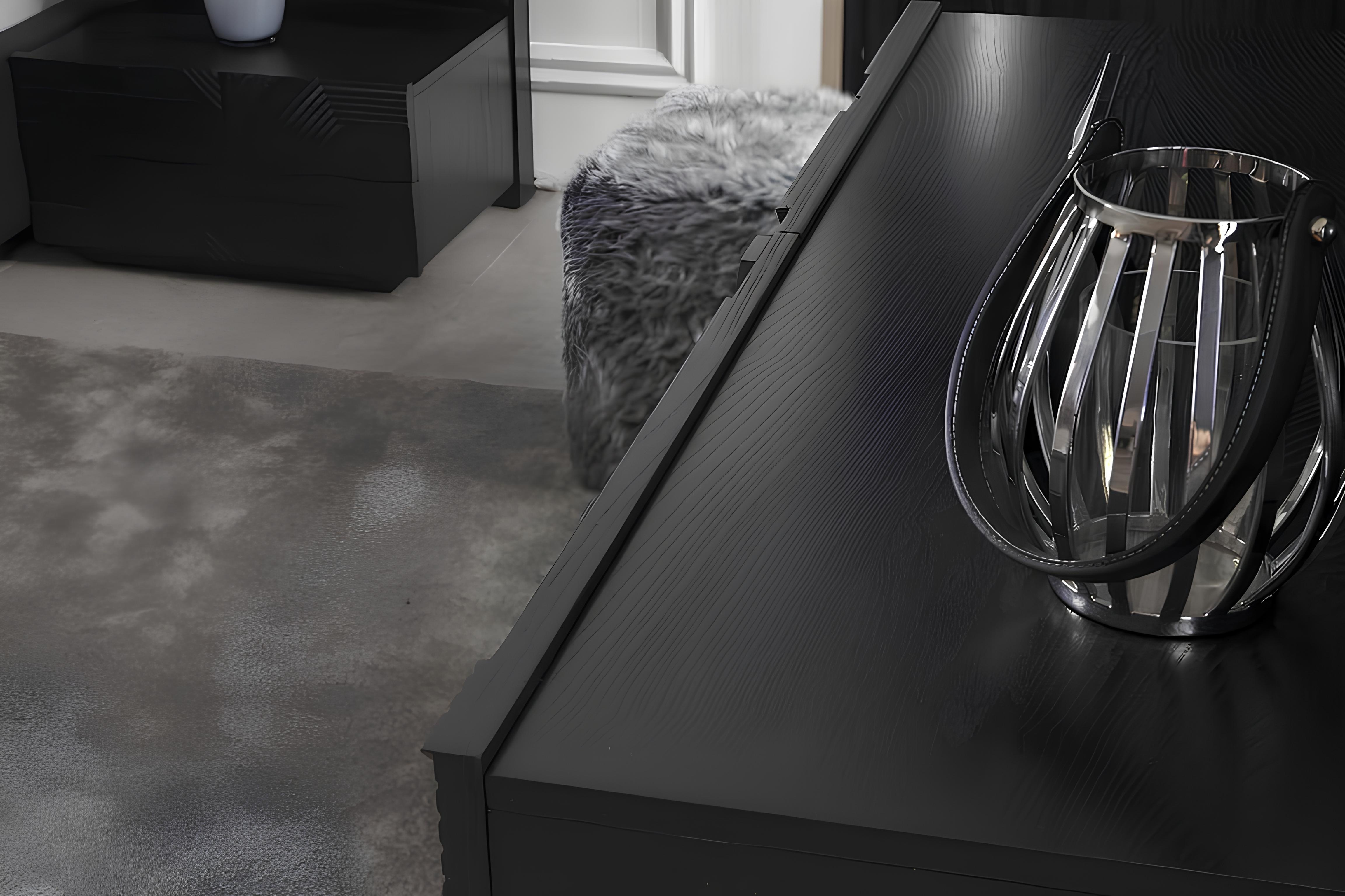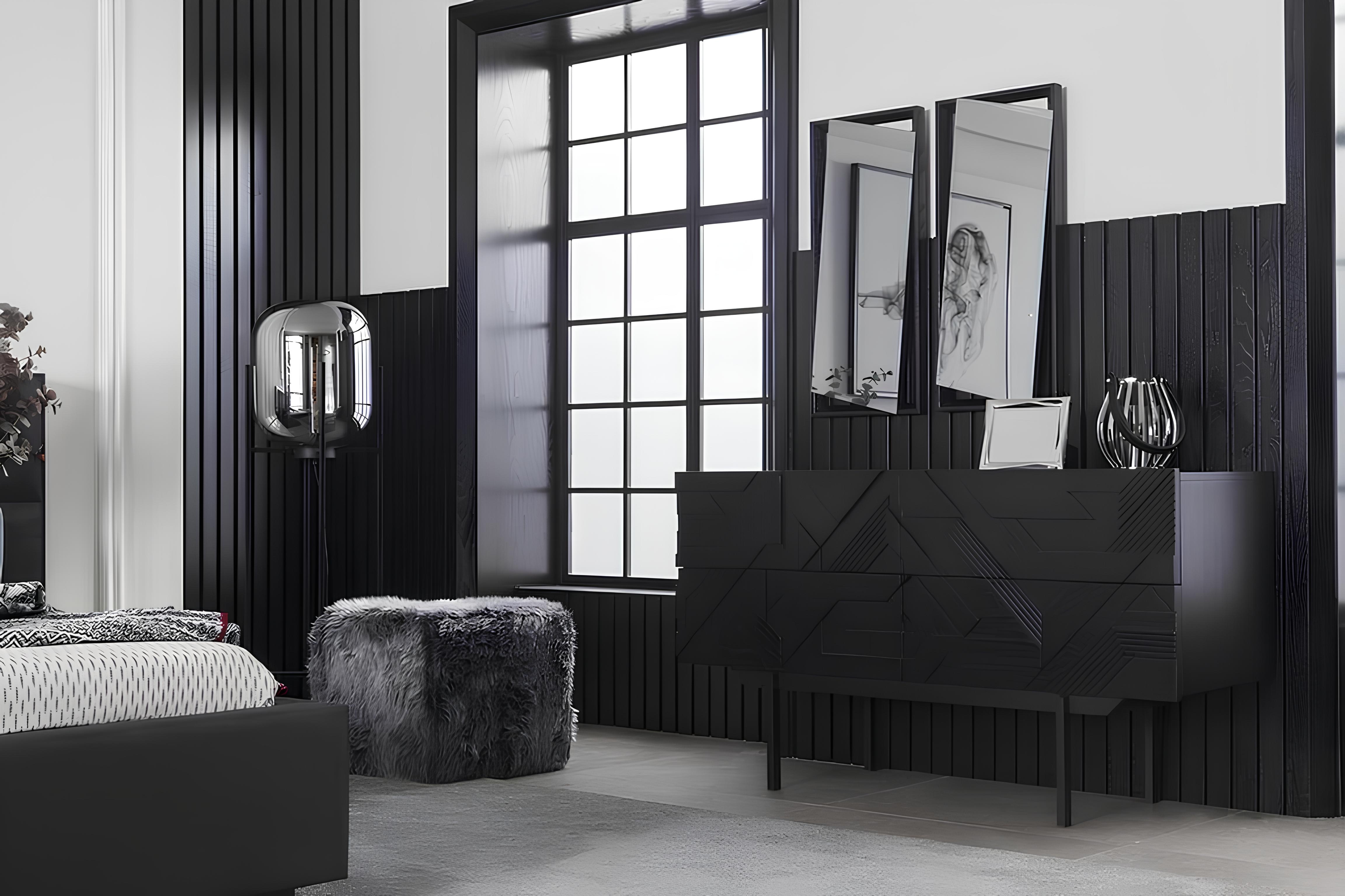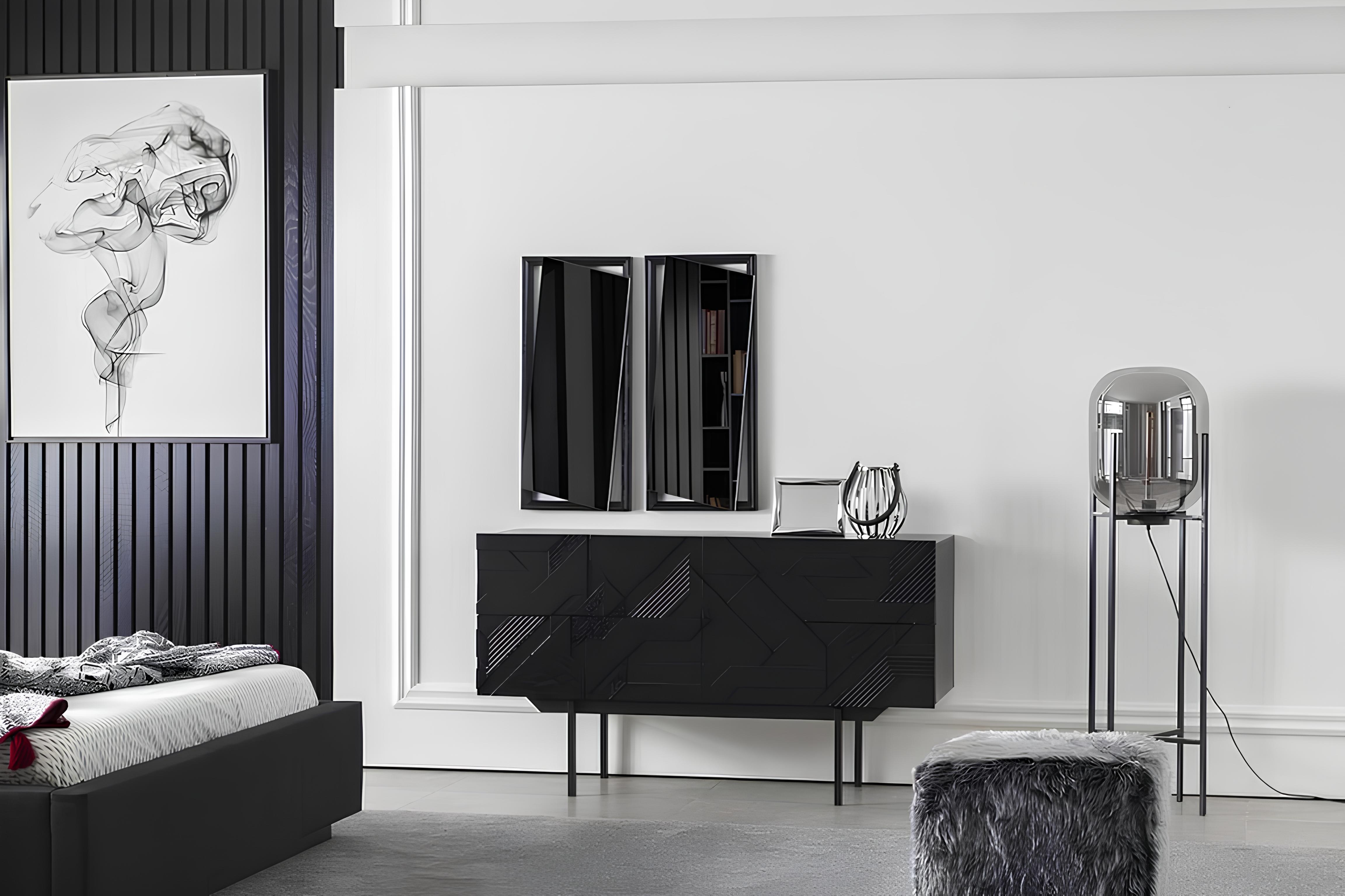 O Conjunto de Móveis de Quarto Melnu em quatro partes é a expressão máxima do requinte e da funcionalidade. Com um acabamento em preto poliéster de alta qualidade, esta coleção sofisticada não apenas eleva a estética do seu espaço, mas também oferece um novo conceito de armazenamento, harmonizando elegância e praticidade. Cada peça foi meticulosamente projetada para criar uma atmosfera exclusiva, refletindo um estilo de vida distinto e refinado. Com 20 anos de tradição em móveis de luxo, a marca assegura que o Conjunto Melnu seja uma escolha excepcional para aqueles que apreciam o melhor em design e conforto. Transforme seu ambiente com a exclusividade e a classe que ele merece.